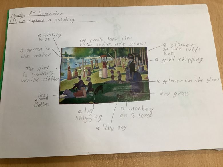 In Autumn, Year 4 explore the work of Seurat, a French post-Impressionist artist known for pointillism. They practise recreating landscapes, using tiny dots and focus on selecting and mixing complementary secondary colours for different effects. The children also consider creating a sense of space, by drawing larger shapes to appear closer and smaller objects to seem further away. This unit links to the study of rivers in Geography.